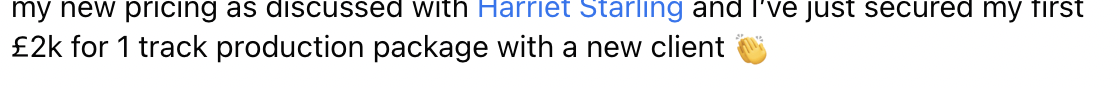 If you are feeling called to get mentoring here are some of the results Starling (aka Harriet) has helped artists and entrepreneurs achieve.